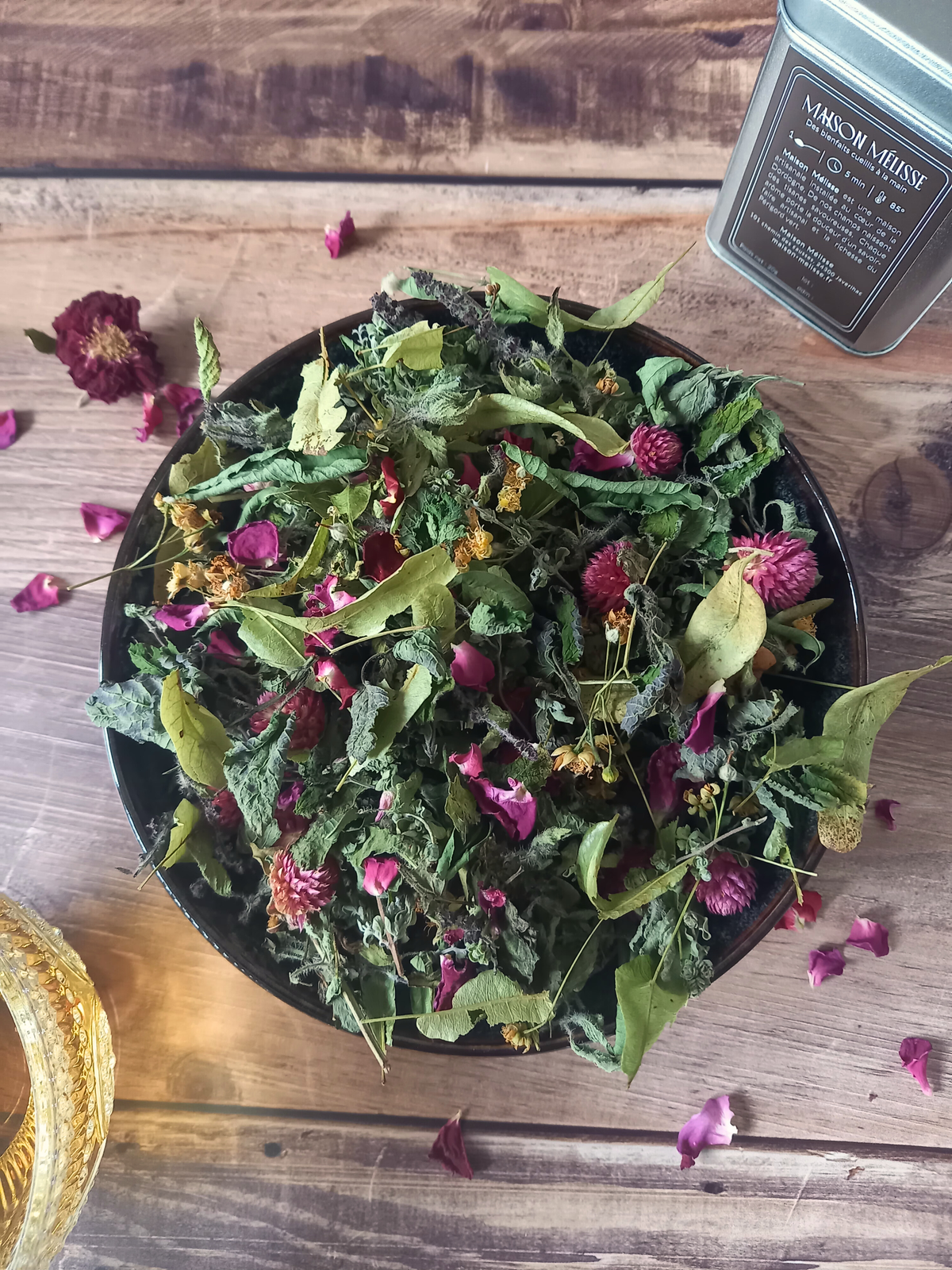 Dans les jardins de Maison Mélisse les plantes sont cultivées à la main. La transformation et l'emballage sont faits par nos soins.